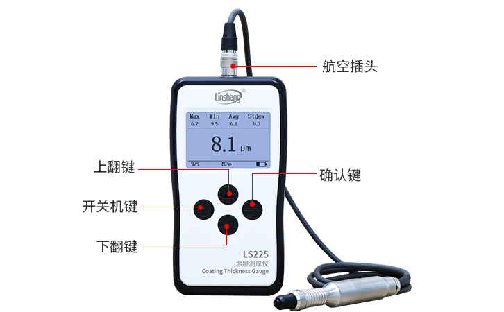 LS225+N1500鋁基涂層測厚儀可用于生產檢驗、施工驗收以及銷售展覽現場對非磁性金屬基材上的非導電涂鍍層厚度進行快速無損的測量,可應用于航空、建材、機械、化工、輕工和儀表等行業。