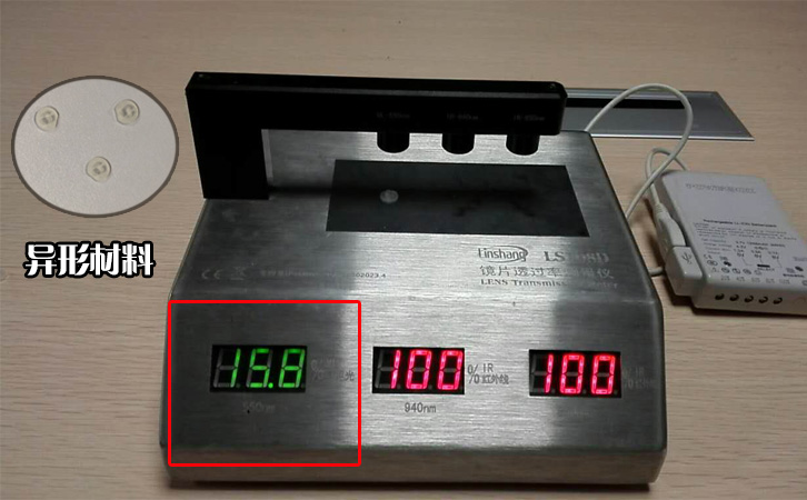 IR油墨測(cè)試儀LS108A和LS108D,主要應(yīng)用行業(yè)是手機(jī)鏡片,紅外油墨,后來(lái)有客戶把儀器應(yīng)用到了紅外濾光條行業(yè),今天要說(shuō)的是IR油墨測(cè)試儀使用新方法,測(cè)試的材料是一個(gè)異性材料,具體使用行業(yè)不清。