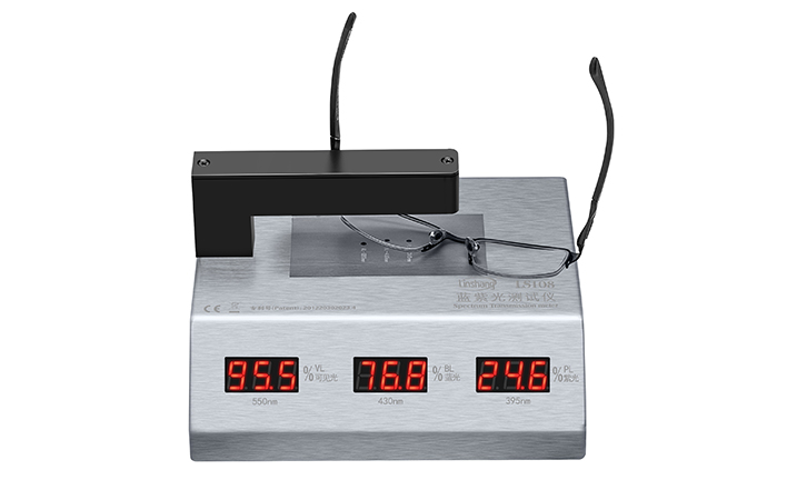 LS108眼鏡鏡片測試儀專業測試眼鏡防藍光的效果,儀器可測可見光,紫光,藍光的透過率。由于防藍光參數國家沒有統一的標準,LS108默認430nm,林上為滿足客戶需求,支持定制藍光光源。