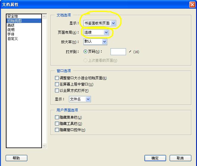 ?設置:“文件—>文檔屬性”,顯示選擇“書簽面板和頁面“,頁面布局選擇“連續”。