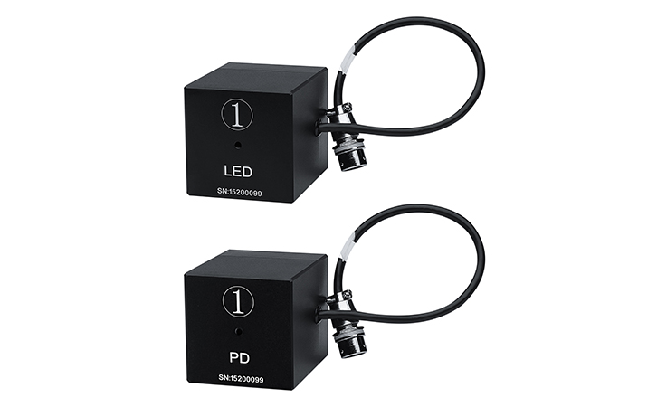 首先,是光源探頭和接收探頭,黑色的小方塊中,上面標注PD的是接收探頭,標注LED的是光源探頭。每個測試點由一個接收探頭和一個光源對應組成。一個控制器可以控制3個測試點,而且控制器與每個測試點之間會用航空插頭連接。