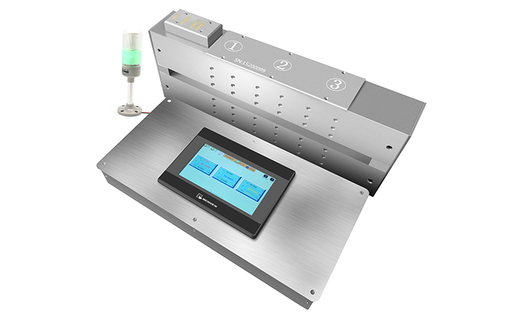 測控主機的機架,是用來安裝測試點以及控制器,旁邊有一個接線盒,通過接線盒里的雙路RS485的輸出線,有一條連接到人機顯示界面,另外一條可以連接到電腦或PLC。人機顯示界面,就是用來顯示測試結果的。報警燈會安裝在人機顯示界面的側邊,測試數據超越限制值時就會報警。方便生產人員對生產的工藝進行調整,能有效的管控生產品質。